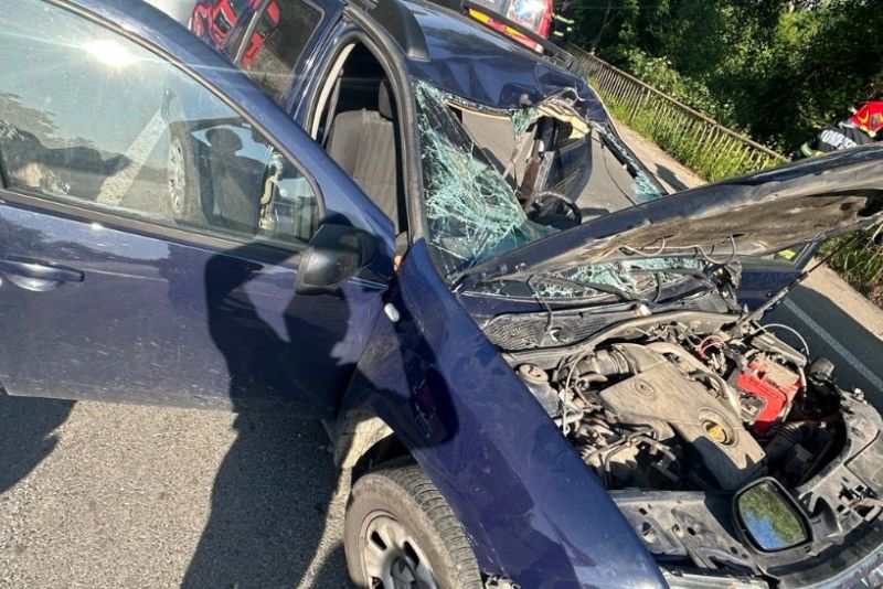 Accident grav, în Gurahonț, Arad, acolo unde un consilier județean liberal a fost prins sub fiarele contorsionate ale mașinii de un bolovan căzut de pe versanți.