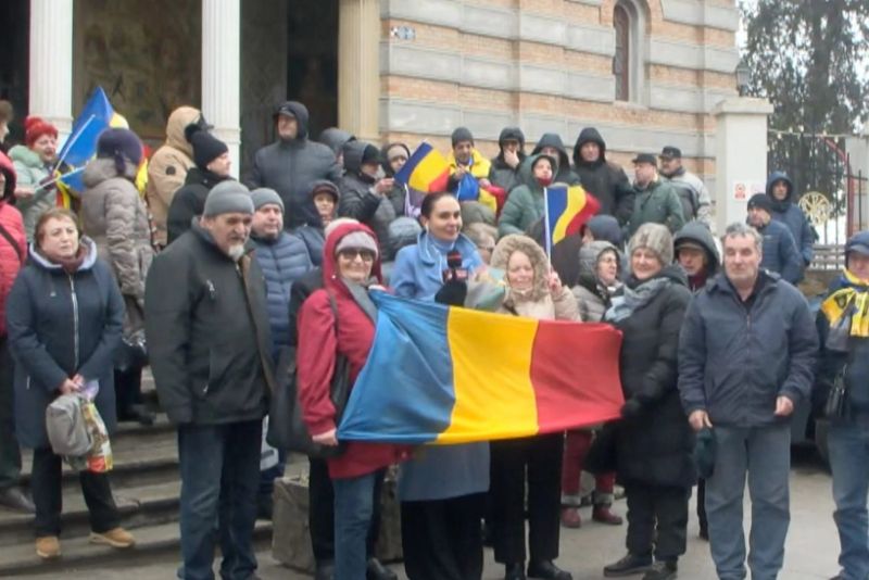 Vicepreședinta AUR pentru regiunea Dobrogea, Alexandra Păcuraru, se află marți dimineață în fața Catedralei Arhiepiscopale din Constanța