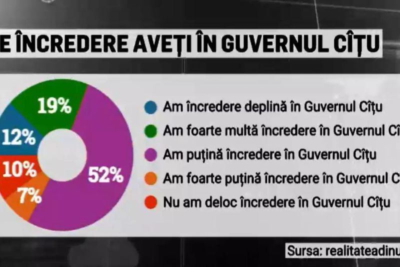 Guvernul Cîțu se bucură de încredere semnificativă la început de mandat, din partea românilor. Conform cifrelor publicate în cadrul emisiunii Culisele Puterii, Guvernul se bucură de încrederea deplină a 23% dintre români, în timp ce 18% se mențin ceva mai rezervați însă acordă credit noului premier.