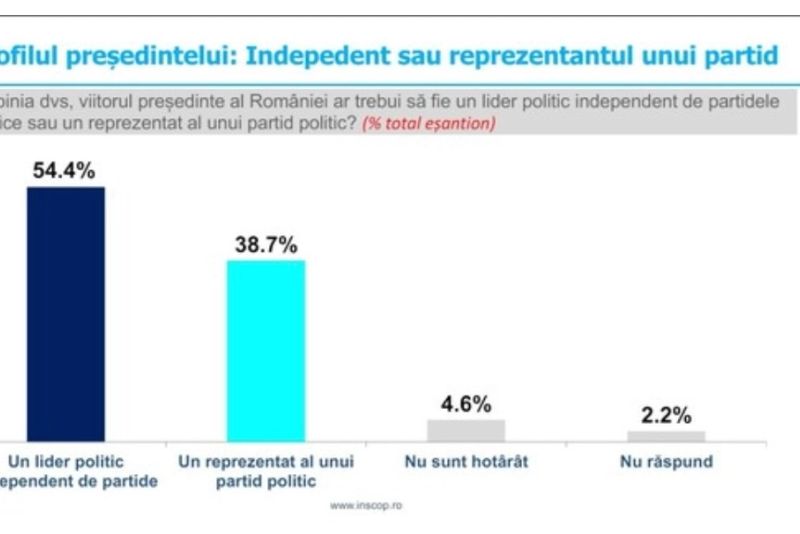 Mai mult de jumătate dintre români sunt de părere că viitorul preşedinte al României ar trebui să fie un lider politic independent de partidele politic, conform unui sondaj realizat de INSCOP.