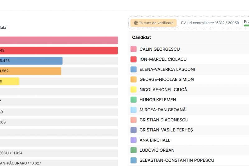ALEGERI PREZIDENȚIALE 2024 - REZULTATE OFICIALE PARȚIALE. CĂLIN GEORGESCU, PE PRIMUL LOC DUPĂ CENTRALIZAREA A 80% DIN VOTURILE DIN ROMÂNIA